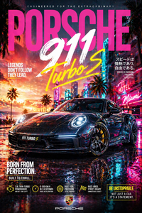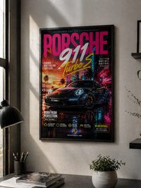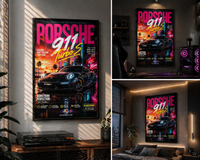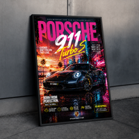 Transform your room with the iconic Porsche 911 Turbo S in a stunning neon-inspired cinematic artwork.